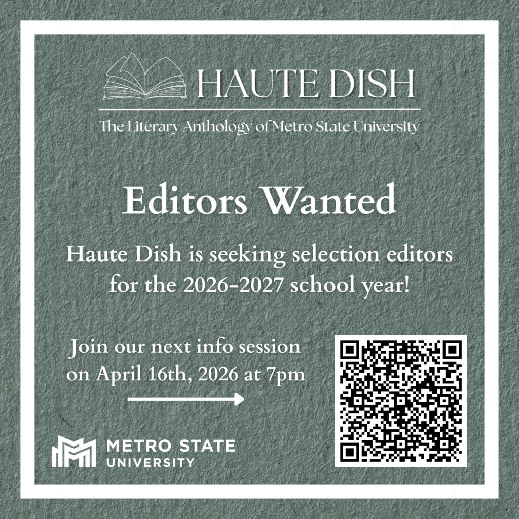 For more information about joining our team of editors, please contact Managing Editor Stephanie Major or Managing Editor in Training Kit Nor at stephanie.major@my.metrostate.edu and kit.nor@my.metrostate.edu, respectively.