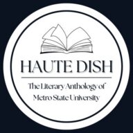 Haute Dish is the literary anthology of Metro State University. Haute is another way of saying fancy or high-class, so it is a play on words for our colloquial Minnesota saying of “hot dish”. Furthering the pun, a hot dish, or casserole, is a mix of ingredients that bake together and become a cohesive meal. Thus, our anthology is a mix of pieces that come together into one final, published piece.